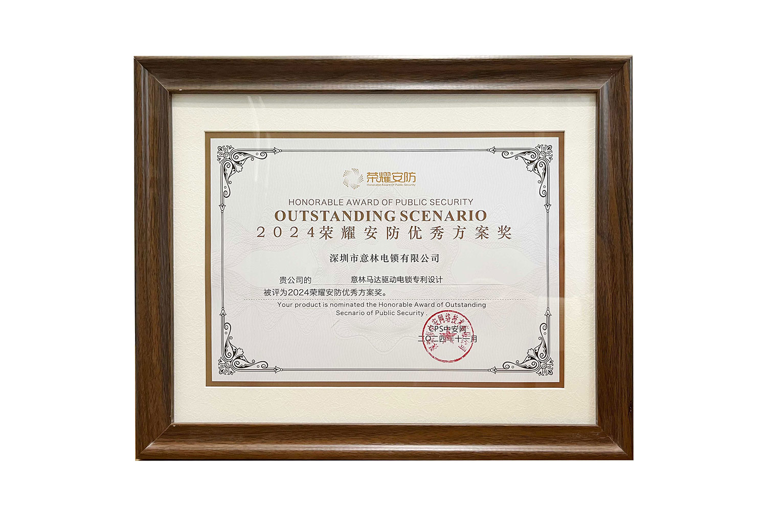 2024年度意林馬達驅動電鎖專利設計榮登 “榮耀安防2024榜單”