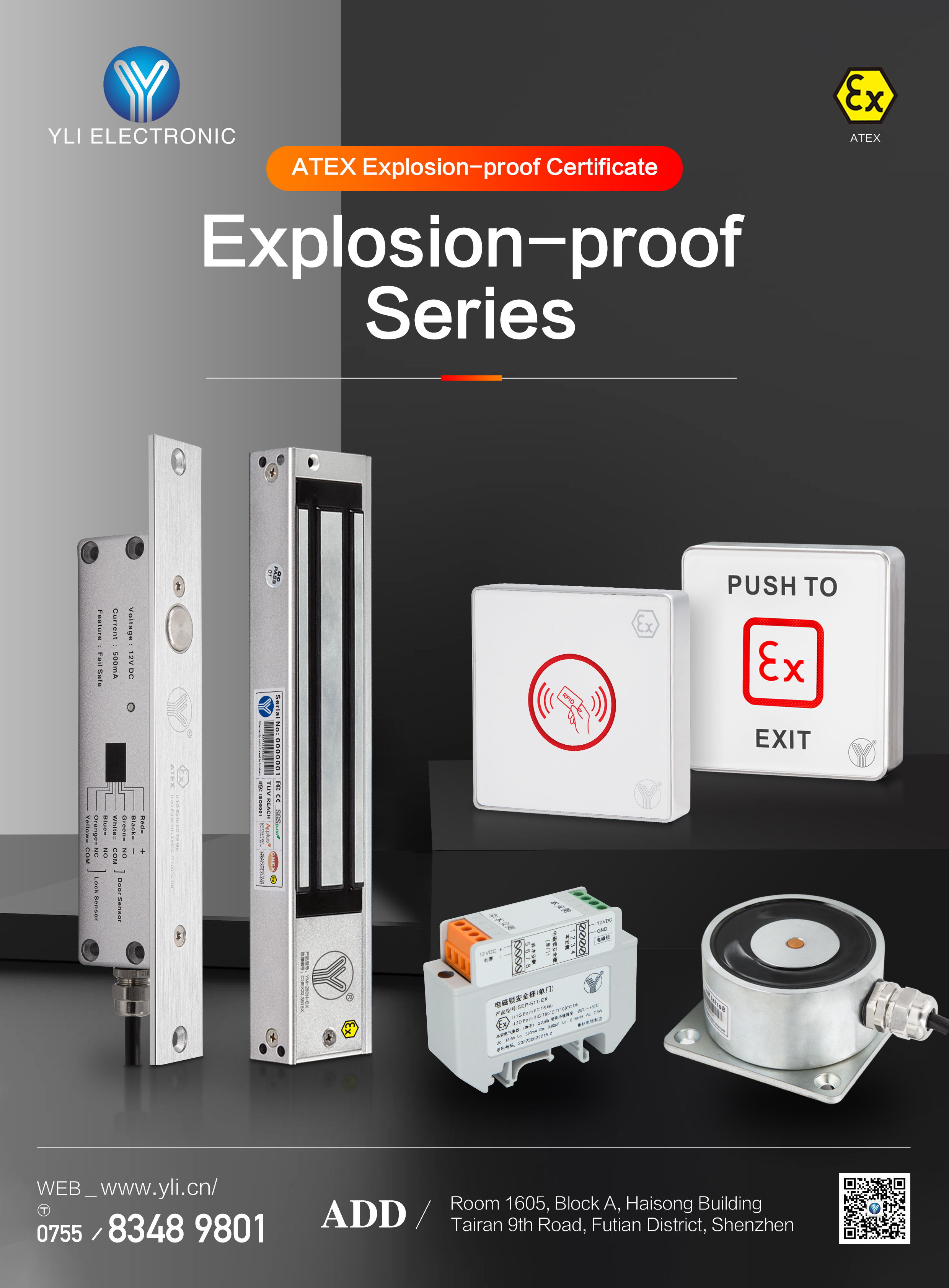 For extreme flammable/explosive settings, YLI offers explosion-proof solutions: magnetic locks, electric strikes, and electromagnetic holds, paired with certified switches and barriers. These products pass CNEX certification, resisting oil, gas, and dust. YLI's magnetic locks also endure 240-hour salt spray tests, ideal for coastal, port, and tunnel environments.