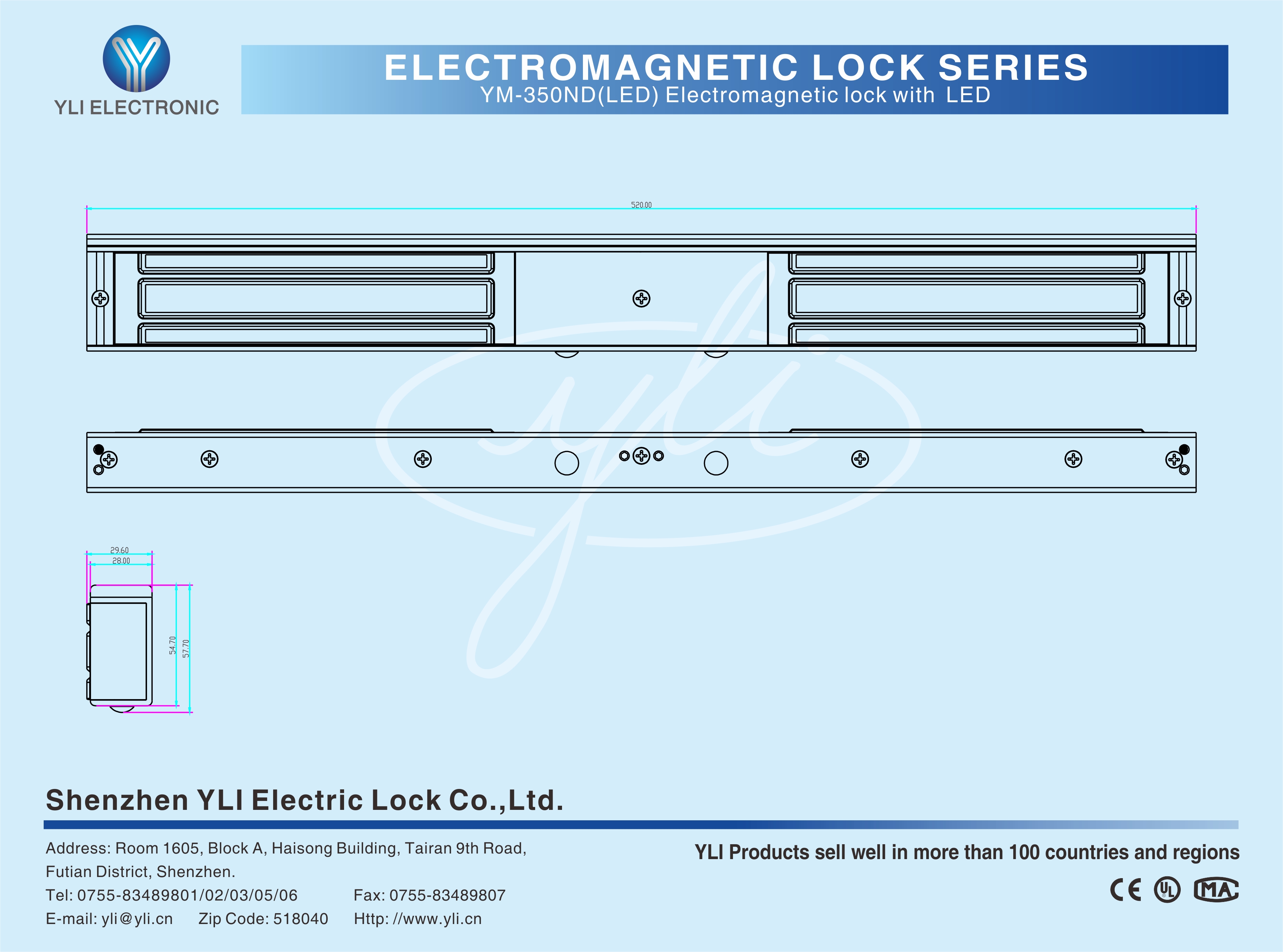 YM-350ND Double door magnetic lock is designed for wooden door, metal door,glass door and fireproof door. YLl magnetic lock cores are produced with robotic laser welding technology, providing 2 to 3 times stronger impact resistance and torsional resistance than conventional production processes. The surface is treated with the internationally leading electroplating process and the lock itself has passed the 240-hour salt spray test in the national laboratory, achieving excellent performance of anti-oxidation, anti-rust and anti-corrosion, Our company offers a complete range of brackets for different locks.