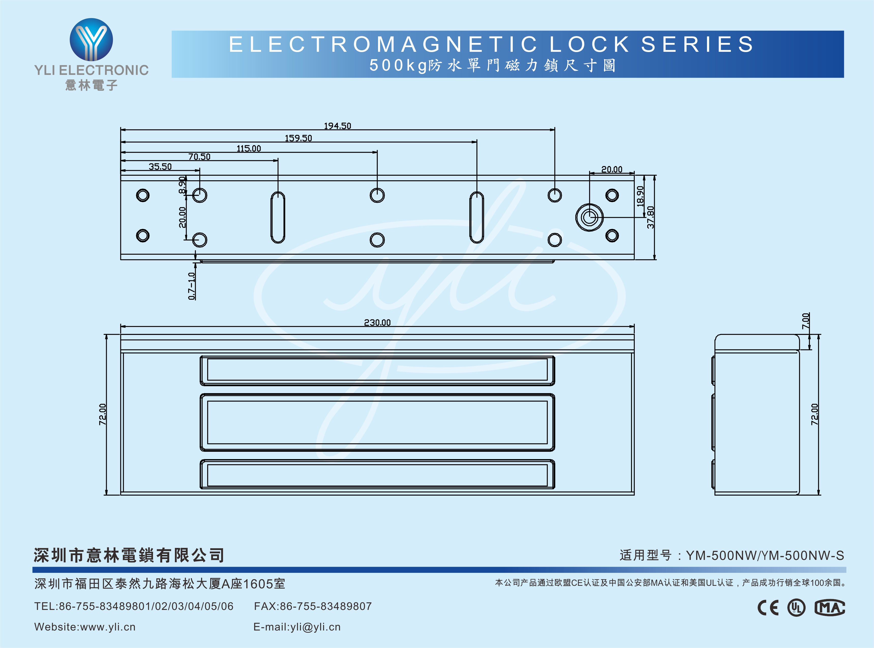 吸力超強:500kg±10%適用溫度:-30 ℃ ~ + 66℃適用濕度:0~95%相對濕度沖擊性能:承受 45J鐵錘撞擊5 次測試殘磁性能:少于 0.5 秒消磁開鎖過壓測試:125%額定電壓 24H沒有損壞低壓測試:85%額定電壓保持相應拉力鎖芯加強: 激光焊接提高結構強度質量保證: 三年質保通過多國認證,符合國際安全高標準